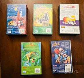 LOTTO 5 VIDEOCASSETTE VHS WALT DISNEY FILM PER TUTTI CLASSICI DI ANIMAZIONE. Ottime condizioni FILM Gli Aristogatti - Il Libro della Giungla- Lilli e il Vagabondo- La carica dei 101 Topolino e il Fagiolo magico.