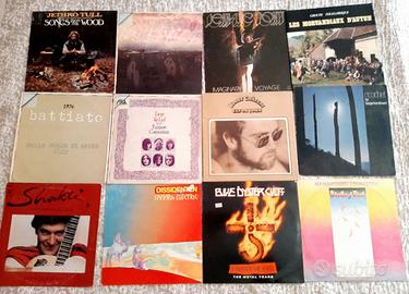 Numerosi LP in vendita a 10 euro l'uno, in prevalenza di rock progressive ma non solo.