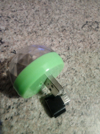 Mini sfera led usb con diversi giochi di luce molto potente va anche a ritmo di musica In omaggio riduttore per smartphone