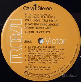 LUCIO BATTISTI Titolo :Il Nostro Caro Angelo = Nuestro Querido Angel Vinile Lp, Album Paese :Spain Anno :1974 Etichetta :RCA Victor TPL1-9061 La condizione :Ottime condizioni. Con qualche segno di usura. Paese :Spain Anno :1974 Etichetta :RCA Victor TPL1-9061 - La condizione :Ottime condizioni. Con qualche segno di usura. - SPEDIZIONE IN TUTTA EUROPA. - Valutazione visiva.