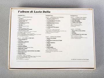 Cofanetto Lucio Dalla n 3 Musicassette Titolo: L'album di Lucio Dalla Pubblicato nel 1983 Etichetta: RCA - MK 33383(3) con libretto dei testi e foto Condizione: Nuovo Preferirei consegna a mano, ma posso anche spedire pagamento e spedizione con TuttoSubito o contanti se nelle vicinanze