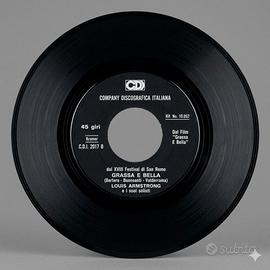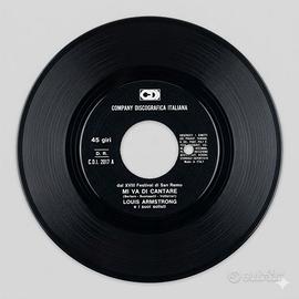 In vendita raro vinile 45 giri di Louis Armstrong, pubblicato in occasione della sua storica partecipazione al Festival di Sanremo del 1968. Un pezzo di storia della musica internazionale in edizione italiana. Artista: Louis Armstrong e i suoi solisti Etichetta: Company Discografica Italiana (CDI) Codice Catalogo: CDI 2017 Anno: 1968 Lato A: Mi va di cantare (presentata al XVIII Festival di Sanremo) Lato B: Grassa e bella Condizioni: Copertina: Originale con l'iconica grafica psichedelica floreale. Presenta i normali segni del tempo che ne attestano l'autenticità (come visibile in foto). Vinile: In buone condizioni generali, etichetta CDI nera con scritte argento ben leggibili. Ideale per collezionisti di jazz, estimatori di Satchmo o appassionati della storia del Festival di Sanremo. è presente un difetto ben visibile nelle immagini che non pregiudica l'ascolto del vinile