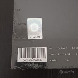 Box set 32x32 cm nero opaco con scritte nere in vernice lucida. Presenta bollino con numerazione progressiva da 0001/1000, apertura laterale e chiusura calamitata.