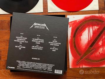 METALLICA "Through The Never" 3 LP box set, compreso di stencil ufficiale e aggiunta di adesivo. Uscito in edizione limitata nel 2013 per l'uscita del film. Condizioni ottime eccetto un paio di segni (vedere foto allegate).