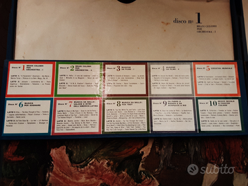 Cofanetto contenente 10 LP 33 giri ,con oltre cento brani famosi. Ottima idea regalo. Disponibili due cofanetti uguali. Rarissimi. Il prezzo s'intende cadauno . Spedisco.