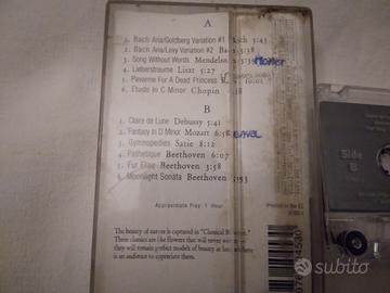 Vendo le seguenti musicassette anni '80/90: -Classical Bouquet (con musiche di Mozart, Beethoven, Bach, Chopin, Mendelssohn, Debussy, Liszt, Ravel, e Satie) in buone condizioni e funzionante, a 3 euro. -"Le Quattro Stagioni" di Antonio Vivaldi", incise su musicassetta registrabile da 46 minuti, in buone condizioni (sono presenti solo un paio di scritte in penna sul retro della copertina), a 2 euro. Consegna a mano a Sovico (Mb) o spedizione.