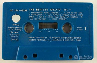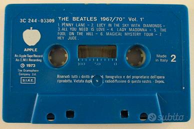 Musicassetta originale del 1973 - THE BEATLES – 1967/70 – volume 1° Musicassetta originale (rarità)originale dell'omonimo complesso musicale del 1973 – etichetta APPLE – made in Italy. Brani musicali: Lato A: 1)- STRAWBERRY FIELDS FOREVER; 2)- A DAY IN THE LIFE; 3)- REVOLUTION; 4)- SGT. PEPPER'S LONELY HEARTS CLUB BAND; 5)- WITH A LITTLE HELP FROM MY FRIENDS; 6)- I AM THE WALRUS; 7)- HELLO GOODBYE; Lato B: 1)- PENNY LANE; 2)- LUCY IN THE SKY WITH DIAMONDS; 3)- ALL YOU NEED IS LOVE; 4)- LADY MADONNA; 5)- THE FOOL ON THE HILL; 6)- MAGICAL MYSTERY TOUR; 7)- HEY JUDE; VALUTAZIONE: CUSTODIA: OTTIMO MUSICASSETTA : OTTIMA