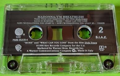 Musicassetta Madonna I'M BREATHLESS - Musica inspirata dal film Dick Tracy - Back in Business - More - What can you lose - Now I'm Following you - Vogue - Commercializzata da Warner Bros. Records Inc. - Made in Italy - Anno 1990