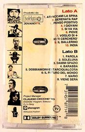 Musicassetta originale stereo dolby surround incisa in Olanda, pubblicata dalla Mercury Records e distribuita dalla Polygram Italia Srl nel 1994 - Edizioni Poligram Soleluna -DJ 'S GANG – Project Manager: Claudio Cecchetto – prodotto da Soleluna Jovanotti. Brani musicali Lato A: -attaccami la spina ( Jovanotti-Cersosimo-Jovanotti) -serenata rep (Jovanotti-Centonze-Jovanotti) -penso positivo ( Jovanotti-Saturnino- Jovanotti) -i giovani ( Jovanotti) -si va via (Jovanotti-Centonze-Jovanotti) -piove ( Jovanotti-Cersosimo-Jovanotti) -voglio di + ( Jovanotti-Cersosimo-Jovanotti) -io ti cercherò (Jovanotti) -il ballerino (( Jovanotti-Morselli-Jovanotti) -India (Jovanotti-Centonze-Jovanotti) Lato B -parola (Jovanotti-Centonze-Jovanotti) -soleluna ( Jovanotti-Saturnino- Jovanotti) -barabba (Jovanotti-Centonze-Jovanotti) -dobbiamo inventarci qualcosa (Jovanotti-Centonze-Jovanotti) -il futuro del mondo (Jovanotti-Saturnino-Centonze-Jovanotti) -Mario (Jovanotti) -viene sera (Jovanotti-Centonze-Jovanotti) valutazione: custodia : ottimo musicassetta : ottimo