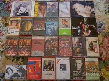 Ho in vendita un assortimento di più di 300 cassette musicali originali di artisti importanti, italiani e internazionali, di genere pop, rock, prog. Le foto riguardano le cassette realmente in vendita ma, non essendo possibile far vedere tutte quelle disponibili, ho preparato una lista. Considerato anche che l'assortimento varia di continuo, consiglio a chi interessato di richiedere la lista aggiornata con prezzi e descrizione dettagliata. I prezzi sono variabili a partire da 2 euro secondo il valore collezionistico delle cassette. Se non diversamente specificato nelle note, le cassette sono di stampa italiana con regolare timbro o bollino SIAE. Sono prime stampe o ristampe successive ma sempre originali, vendute e distribuite dalle case discografiche ufficiali fino al 2004. Le condizioni sono buone, ottime o come nuove, alcune sigillate. Tranne quelle sigillate, tutte le cassette più importanti sono state testate con ascolto completo di almeno una facciata, risultando funzionanti e di buona-ottima qualità audio. Consegna a mano o spedizione per chi non è della zona, secondo tariffe postali a carico dell'acquirente. Pagamenti tramite bonifico, paypal o altri metodi a richiesta