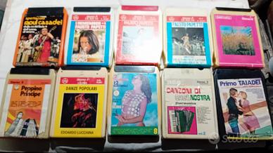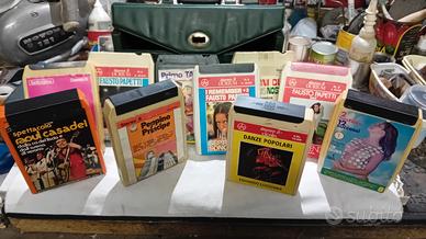 Vendo n 10 cassette per stereo 8 con vari brani musicali. Bauletto portacassette in ecopelle incluso. Ritiro a mano o spedizione a vostro carico.