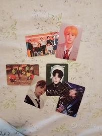 Vendo un pacchetto contenente Photocard originali dei BTS, STRAY KIDS. Photocard dei seguenti gruppi: BTS, STRAY KIDS, ATEEZ, ENHYPEN, NCT, SEVENTEEN. Big photo: Changbin (straykids), Jimin (BTS). Braccialetto Concerto ATEEZ: Yunho. Gadget BTS. In buone condizioni.