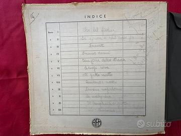 Raccolta di dischi a 78 giri pubblicati per l’etichetta Parlophone, dell’artista Cosimo Di Ceglie. La raccolta comprende 12 dischi differenti e in ottime condizioni. Leggeri difetti e segni di usura nell’indice e nei bordi della copertina.