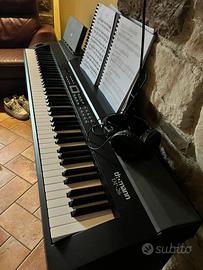 Pianoforte digitale, usato ma in ottime condizioni, usato per allenarsi, ma e stato trattato sempre nel miglior modo possibile….la cuffia in dotazione data dall’azienda, non funziona nel lato sinistro, la panca ha un po di graffi dati dai vari spostamenti ma apparte l’estetica funziona tutto perfettamente, la tastiera funziona perfettamente e come da foto è stata tenuta sempre in perfette condizioni, ha 88 tasti, ha tante modalità d'uso tra cui una decina di effetti sonori , metronomo incorporato, tante canzoni e molto altro. Tasti non pesati.
