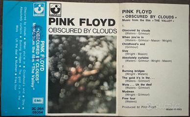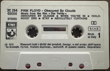 Audiocassetta originale Pink Floyd – “Obscured by Clouds”, colonna sonora del film “The Valley”. Edizione italiana Harvest/EMI, Stereo, S.I.A.E., Made in Italy, anno 1972 (come riportato su cassetta e J-card). Un titolo fondamentale del periodo 1972: atmosfere cinematiche, momenti acustici e passaggi psichedelici tipici dei Pink Floyd pre-Dark Side.