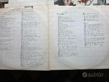 Vendo LP PINK FLOYD THE WALL-1979 LABEL HARVEST EDIZIONE ORIGINALE RARA DEL 1979. Tutti i codici originali su ogni side I vinili non hanno mai suonato, condizioni VG+. Copertina con normali segni del tempo Tracklist A1In The Flesh? A2The Thin Ice A3Another Brick In The Wall Part 1 A4The Happiest Days Of Our Lives A5Another Brick In The Wall Part 2 A6Mother B1Goodbye Blue Sky B2Empty Spaces B3Young Lust B4One Of My Turns B5Don't Leave Me Now B6Another Brick In The Wall Part 3 B7Goodbye Cruel World C1Hey You C2Is There Anybody Out There? C3Nobody Home C4Vera C5Bring The Boys Back Home C6Comfortably Numb D1The Show Must Go On D2In The Flesh D3Run Like Hell D4Waiting For The Worms D5Stop D6The Trial D7Outside The Wall