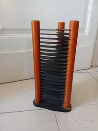 vendo un porta CD in legno e plastica, 20 spazi, dimensioni 35x17x17 cm, da tavolo o da pavimento. In ottime condizioni, solo po' macchiato e impolverato