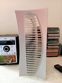 Torre per 25 cd in plastica grigio chiaro, lungo 40 cm, posizionabile sia verticalmente che orizzontalmente.