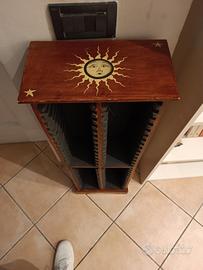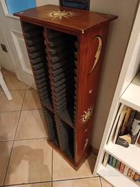 Caratteristico porta cd in legno stile etnico, verticale con una capienza di 60 CD. Consegna a mano Napoli zona Carlo3.
