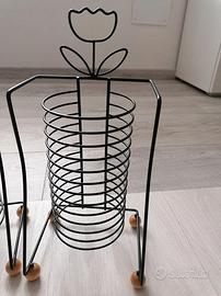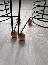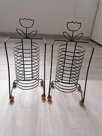 Coppia porta CD in ferro con appoggio in legno, 12 posti per ognuno. Misure lungo cm.15 profondo cm.14 alto cm.30