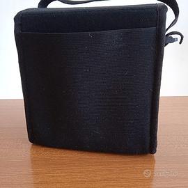 Portacd/dvd nero, marca Tucano, con manico, chiusura sul davanti, tasca dietro come in foto. Misure cm 15 x15 x12