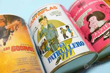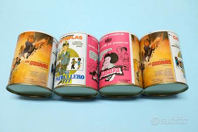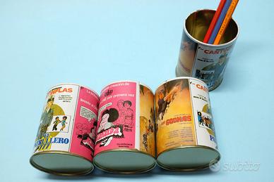 Barattolini portapenne vintage anni 80, realizzati come raro gadget merchandising - materiale pubblicitario delle locandine dei film, nella versione spagnola: