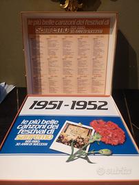 Bellissima raccolta dei brani di San Remo dal 1951 al 1980. 10 LP. Mai usati. Ricordi di famiglia. Mio padre è stato un cantante per 40 anni.