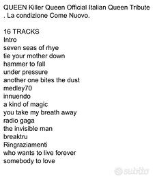 QUEEN Killer Queen Official Italian Queen Tribute RARE CD cover Band Queen official Italian