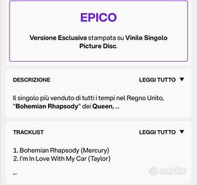 Vinile in edizione limitata per i 50 anni di carriera dei Queen in formato Picture Disk uscito a novembre 2025 edizione limitata e speciale