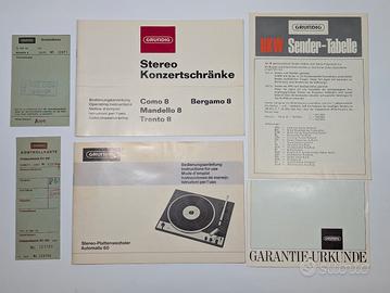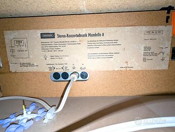Una radio con giradischi molto costosa ed ambita negli anni '70; Mandello 8 ( 1974/75 ) della Grundig Con 21 transistor, 7 circuiti in Am e 11 circuiti in Fm Alimentazione a corrente alternata 110; 240 volt Con 2 altoparlanti sono inseriti in un mobile di legno di 1180 x 770 x 380 mm Le condizioni del Mandello sono quelle del nuovo di fabbrica seppur ha 50 compiuti appieno Tutta funzionante ha l'intera documentazione originale avuta dall'acquirente ( unico proprietario) Solo ritiro in sede