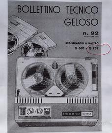 Registratore Geloso G257 a valvole con occhio magico, completo di: bobine, cavo di alimentazione (non originale) e bollettino tecnico (in copia, foto 5) che comprende: istruzioni, manutenzione, schemi elettrici ecc..). SI ACCENDE, GIRA MA NON PARLA. Coperchio integro ma graffiato. Per informazioni chiamare il 3487146039. Si astengano perditempo e ribassisti. Questa è una vendita tra privati, con esclusione di garanzia e con la formula "visto e piaciuto". L'oggetto è venduto "così com'è" e non è prevista nessuna restituzione.