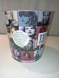 Secchiello per pop corn in latta, tema Taylor Swift - The Eras Tour. Nuovo ancora con etichetta