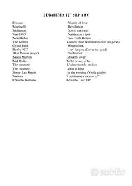 Selezione dj Vinili anni 80 tutti in Buone condizioni a 8 € cadauno. Foto dei Vinili e Liste aggiornate qui allegate. Spese di spedizione a carico dell' acquirente.