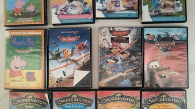 14 DVD con diversi cartoni animati. Varie episodi delle serie: 2x Peppa Pig, 3x Dottoressa peluche, 4x Chuggington, 1x Cars Film completo Aristogatti, Planes 1&2, documentario sui dinosauri. 3€ al pezzo oppure 40€ per il set completo