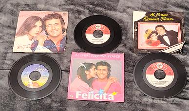 Nr. 3 vinili 45 giri dei Al Bano e Romina Power con custodia originale (parti strappate).