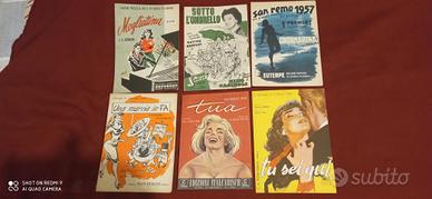vendo n 350 PZ circa spartiti musicali del festival di s.remo formato piccolo (17x25) dal 1950/60/70/80/90 da collezione tenuti in eccellenti condizioni ad €13 CAD .x min.3 PZ. €10 CAD. altri titoli non esitate a contattarmi su whatsapp al n.3392793003.