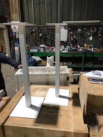 Salve vendo come da titolo degli stand fatti da me su misura per diffusori e casse Bookshelf da scaffale. I piedistalli vengono realizzati in alluminio con altezza e dimensioni variabili a seconda delle vostre casse e successivamente vengono portati in verniciatura dove potrete scegliere 2 colori per gli stand (bianco e nero) con finitura lucida o opaca a seconda dei vostri gusti. Gli stand godono di un' ampia possibilità di personalizzazione come ad esempio i fori filettati alla base per le Puntine in metallo per ridurre le vibrazioni, il foro al centro del piedistallo per inserire della sabbia o la doppia colonna, il tutto varia a seconda delle vostre esigenze. Prodotto solido e personalizzabile al 100% non paragonabile come qualità costruttiva agli stand cinesi con spessori e stabilità irrisorie. Le foto sono degli esempi di vari stand in diverse lavorazioni colorazioni e altezze. Ottimi per diffusori da home theater, stereo 2 canali, surround o per canali centrali come Klipsch Jbl Indiana Line Mission Sonus Faber Focal etc.... Per ulteriori informazioni o foto non esitate a contattarmi su whatsapp al mio numero: 3427972778 grazie! Prezzi a partire da 80 euro la coppia e variabili a seconda di altezze e lavorazioni richieste. Non spedisco solo ritiro o consegna a mano