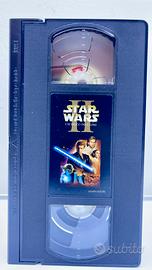 VHS originale italiana di Star Wars: Episodio II – L’Attacco dei Cloni, distribuita da 20th Century Fox Home Entertainment nel 2002. Edizione PAL, master digitale con certificazione THX. Cassetta completa nella sua custodia rigida originale in plastica dorata. Presenti bollino SIAE e ologramma Univideo, a conferma della distribuzione ufficiale italiana.