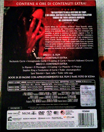 Vendo come da foto nuovo cofanetto in edizione limitata del film Carrie tratto dal romanzo omonimo di Stephen King! Il cofanetto comprende 3 DVD incluso il film e 3 ore di contenuti speciali, e un book fotografico di immagini rare e MAI pubblicate prima!
