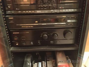 Vendo stereo perfettamente funzionante formato da Tehincs DC servo automatic turnotable sistem SLBD20 Kenwood Quartz sinthesizer AM-FMstereo tuner KT-1010L Sony stereo cassette devi Tc/wr500 Teac PD-155 compact disc player Pioneers stereo amplifica A-333
