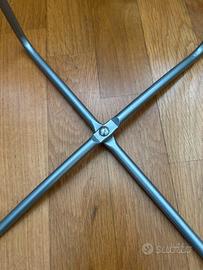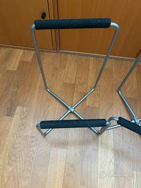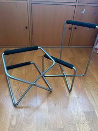 Supporti per altoparlanti in acciaio in stile vintage prodotti da Ikea negli anni '90, caratterizzati da una struttura tubolare e imbottiture in schiuma nera.