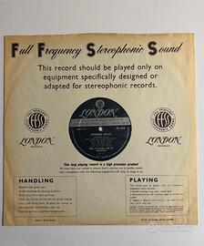 Disco quasi perfetto che riporta solo un paio di graffi superficiali che non compromettono l'ascolto. Disco originale uscito nel 58, la custodia è stata riparata con del nastro in quanto ha dei difetti dati dal tempo ben visibili in foto. Interessante l'acquisto per chi vuole vivere le emozioni musicali dell'epoca.