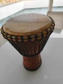 TAMBURO jambe provenienza Senegal in legno esotico, timbro suono alto, H cm 35, diametro 25 cm