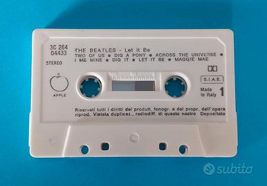 Musicassetta dell'album "Let it be" dei The Beatles, la musicassetta e la copertina sono in condizioni più che buone, la custodia presenta alcuni segni di usura ma non ha alcun difetto grave.
