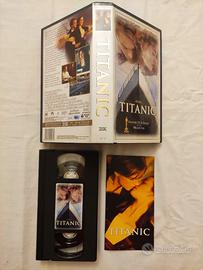 Vendo VHS Titanic, il cofanetto con videocassetta del film del 1997 di James Cameron con Leonardo DiCaprio e Kate Winslet.