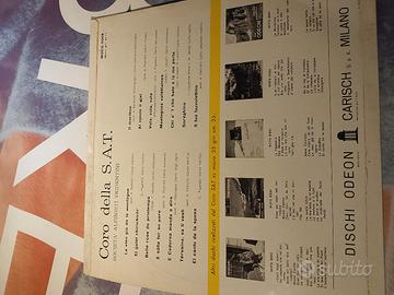 TITOLO: Coro della S.A.T. – Società Alpinisti Tridentini – LP 33 giri – Dischi Odeon / Carisch (I dischi del Coro della S.A.T. sono molto ricercati da appassionati di cori alpini, musica popolare e tradizione trentina; edizioni Carisch/Odeon ben conservate hanno un buon mercato.) DESCRIZIONE: LP 33 giri del Coro della S.A.T. (Società Alpinisti Tridentini), edizione Dischi Odeon/Carisch, copertina in ottime condizioni e vinile perfetto come nuovo. Una raccolta storica di canti di montagna, cori alpini e brani della tradizione trentina, con titoli celebri come La vien giù da le montagne, Al canti d’j alp, Seregnieme biaste la me bionda, Montagnes Valdôtaines e molti altri. Ideale per collezionisti di musica popolare italiana, cori alpini, suoni delle Alpi, folklore trentino, LP vintage, vinili Carisch/Odeon, registrazioni storiche, musica corale e dischi tradiz