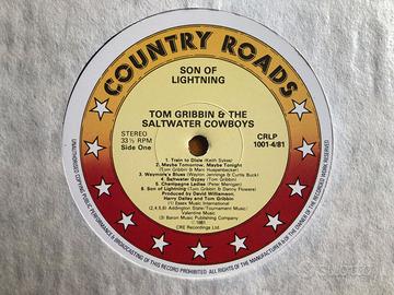 Tom Gribbin, Son Of Lightning, Vinile Primo album di Tom Gribbin, Son Of Lightning, etichetta Country Roads, UK 1981, genere Folk Country. Consegna a mano Roma/Eur.