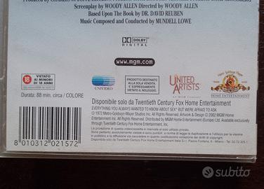 VHS Tutto quello che avreste voluto sapere sul sesso (ma non avete mai osato chiedere) 1972 Regia: Woody Allen Cast: Woody Allen, Gene Wilder, Burt Reynolds, Lynn Redgrave. Edizione MGM Home Entertainment Inc. 2002 Lingua: Italiano.