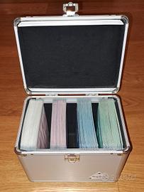 Valigetta porta cd/dvd. Può contenere fino a 120 cd/dvd in 60 comode bustine numerate e colorate a gruppi di quattro colori. Chiusura a chiave, comoda maniglia per il trasporto. Dimensioni 22x16x18.5 cm Nessun graffio o segno di usura