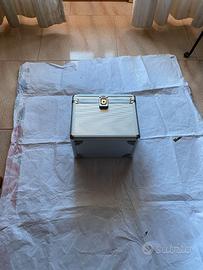 Valigetta con chiave e 60 bustine con bacchette scorrevoli numerate di vario colore al suo interno + pacchetto con altre 100 bustine con bacchette scorrevoli sigillate in busta di plastica nuove con N° 2548-EP per poter scorrere sui binari interni alla valigetta. Dett. valigetta: In Plastica colore grigio chiaro con parti cromate con maniglie serratura con chiavi interno foderato. Dim: 22 x 17 x20 H cm. Come Nuovo mai Usato piccolissimo inconveniente perdita di colore sulla parte frontale causa tocco contro qualcosa forse non so.